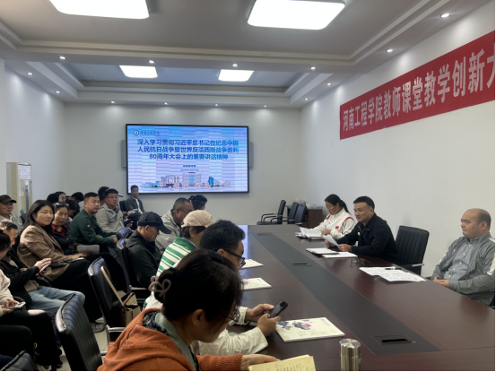 2025年10月15日,河南工程学院体育教学部在体育馆一楼会议室召开全体教师会议,深入学习贯彻习近平总书记在纪念中国人民抗日战争暨世界反法西斯战争胜利80周年大会上的重要讲话精神。会议由体育教学部党总支书记周凯主讲,全体教师参加了此次学习。