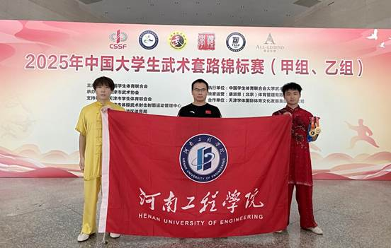 我校运动队在体育教学部书记周凯为领队,主教练朱轶龙的带领下,派出两名运动员参了此次大赛,经过5天的激烈争夺,我校计算机学院2021级孙振杰同学获得本科男子甲组枪术(第一名),本科男子甲组武当拳(第一名),同时朱轶龙教练被大赛组委会评为:“优秀教练员”,2024级机械工程学院张云龙同学被评为“体育道德风尚运动员”。