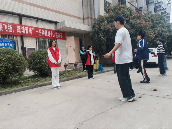 系列活动共分为三场独具特色的挑战赛,场场精彩,吸引了广大师生的热情参与:撑霸河工,舍我其谁”平板支撑大赛率先拉开帷,赛场上,参赛者们以顽强的毅力挑战自我极限,用坚实的核心力量诠释着“坚持就是胜利”的劳动品质。紧随其后的是 “绳采飞扬,跃动青春”一分钟跳绳比赛。同学们在跳跃中释放青春活力,体验着节奏与韵律之美,感受着汗水换来的成就感。最后是 “一掷乾坤,谁主沉浮”实心球个人挑战赛,这项运动不仅是对爆发力的考验,更是对全身协调用力和技术掌握的挑战,同学们奋力一掷,投掷出的是实心球,激荡的是勇于担当、敢于创造的豪情。