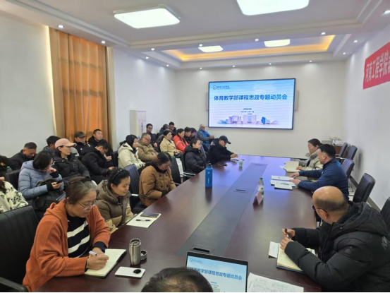 为深入贯彻落实新时代立德树人根本任务,将思想政治教育有机融入体育教育教学全过程,2025年12月17日下午体育教学部在体育馆一楼会议室隆重召开课程思政系列专题活动动员会。体育教学部全体教师参加了本次会议,会议由体育教学部党总支书记周凯主持。
