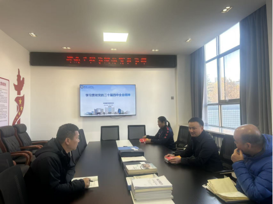 10月28日上午,体育教学部总支委在体育馆二楼会议室召开第一议题学习—深入学习《党的二十届四中全会精神》,总支委成员参加会议。党总支书记周凯主持会议。